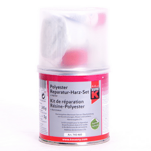 Benötigte Menge an Auto-K Polyester-Reparaturharz mit ca. 2% Härter gut vermischen.